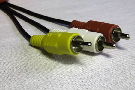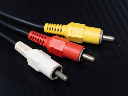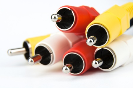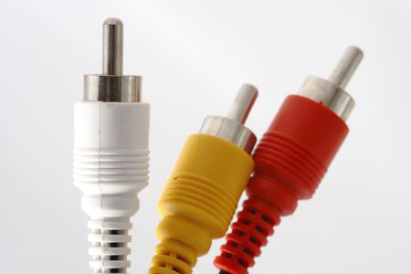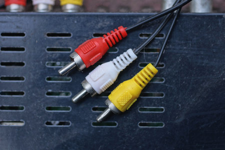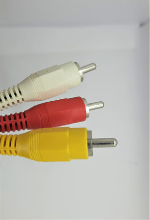 Close up of red, white and yellow RCA cables