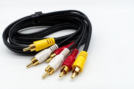 Composite audio video cables on isolated background