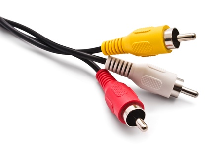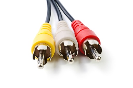 RCA plugs cable for composite video and stereo audio isolated over the white background