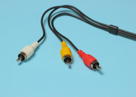 RCA cable on blue background