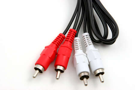correct conection between left - right audio RCA cable on a white background (red white)