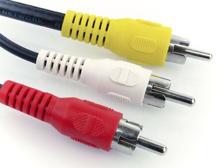 RCA plugs cable for composite video and stereo audio isolated over the white background