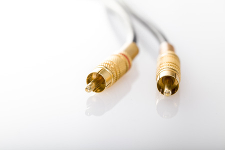 Close up photo of a RCA cable with withe background