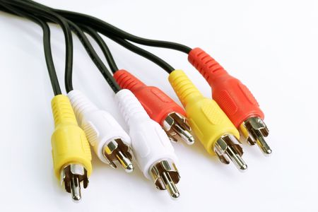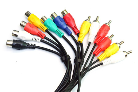 colorful av cables isolated on white background.