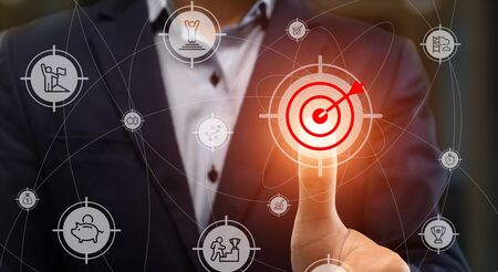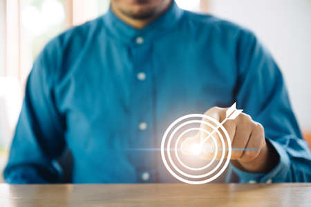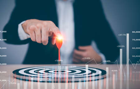 Targeting the business concept, Businessman touch red dart to the virtual target dartboard, Executive marketing, investment goal and target for business investment concept,