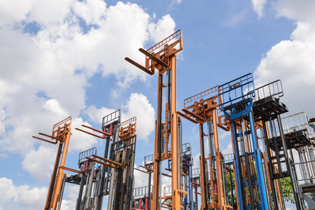 Lift trucks, fenwicks, on blue sky, waiting to be used