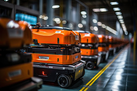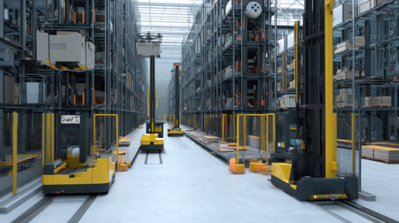 Efficient robots revolutionizing warehouse logistics., generative AI