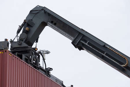 Shipping container site loading by crane in logistic port warehouse storage factory manufacturing business transportation import and export goods of freight business carrier.