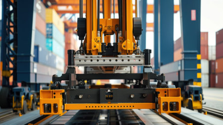 A vibrant image of an industrial crane lifting a container in a port, showcasing the essential elements of logistics and shipping operations within modern infrastructure.