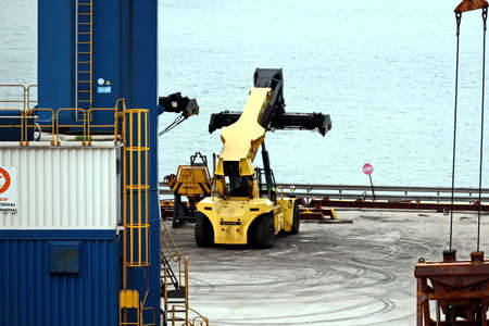 Logistics and transportation of harbor, container truck, container forklift, the concept of export and import in transportation International trade