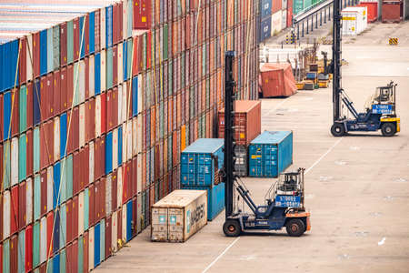 Yantian, China - December 19: Container terminal in port of Yantian on December 19, 2018 in Yantian, China.