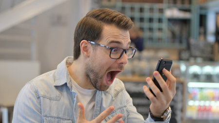 Portrait of Young Man Celebrating on Smartphone