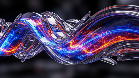 Abstract glass tube with blue and orange electric energy flowing through it. Clear details and vibrant colors ...