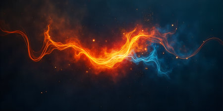 Abstract Fiery Icy Energy Streams Dark Background Digital Art