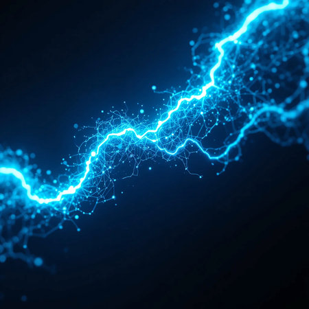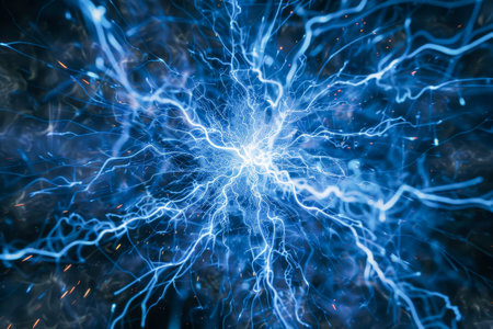 A dynamic visualization of electric arcs, resembling neural activity, sparks with vibrant blue energy.