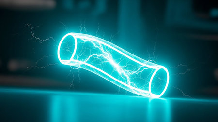 An illustrative image presents a glass jar containing an electric arc, with sparks and energy illuminating the interior. The composition showcases a darkened environment, emphasizing the bright, vibrant nature of the electric current. It may be used for educational material or design projects centered around science or technology.