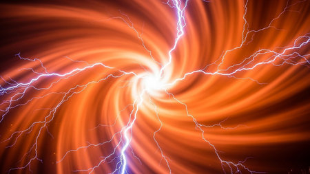Abstract energy discharge illustration with swirling smoke and sparks