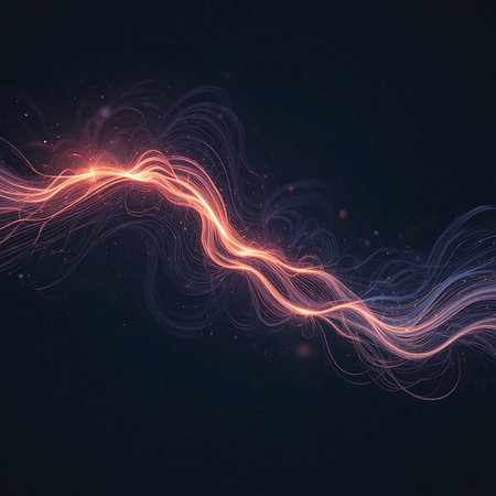Smooth wavy spark streams create dynamic energy lines against a dark background