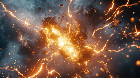 Dynamic explosion with lightning sparks and fiery colors effect