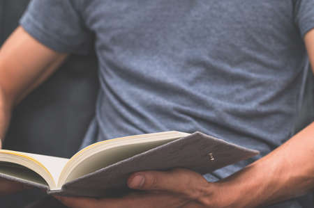 young man hand holding a book with empty space