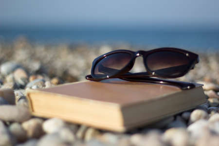 book on the grass in the park, glasses, close-up, the concept of summer vacation, reading literature in nature, rest and study