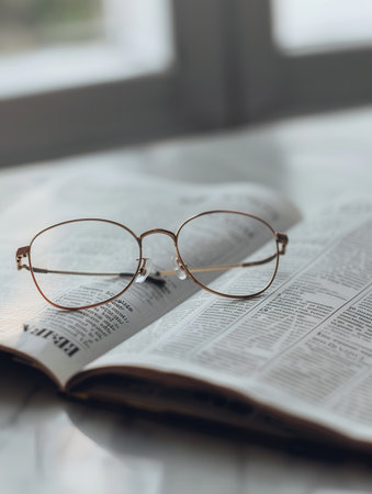 Book and Glasses on Window Sill, Capturing a Moment of Tranquility and Reflection