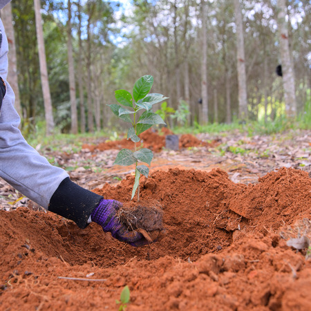 Hand for planting trees back to the forest, Creating awareness for love wild, Wild plant concept.