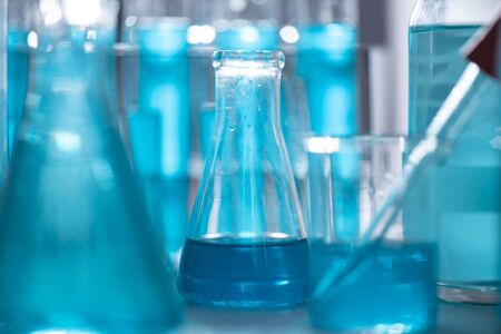 Laboratory glassware with color liquid in the scientific laboratory, science research and development concept