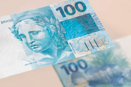 Brazil money, Paper banknotes with the highest value of 100 Reais. Both sides of the currency
