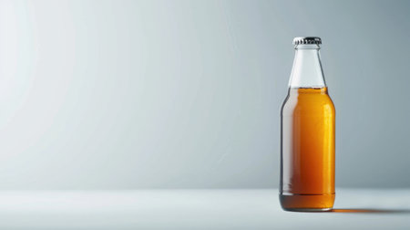 A bottle of kombucha against a plain background with free place for text. Trendy organic refreshing natural beverage