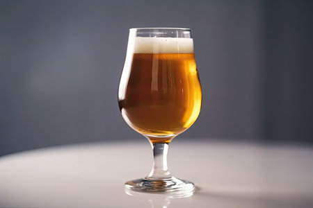 A glass of beer on a light background with selective focus by generative AI