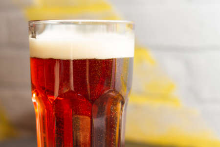Glass of beer with foam, close-up. Macro shot.