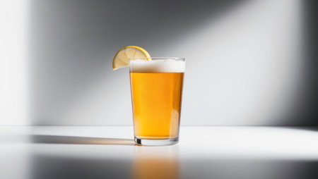 AI Generated. Refreshing cold beer with lemon slice on a dark background