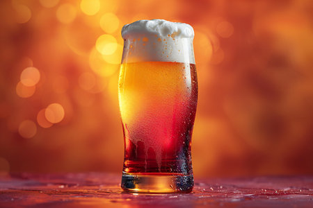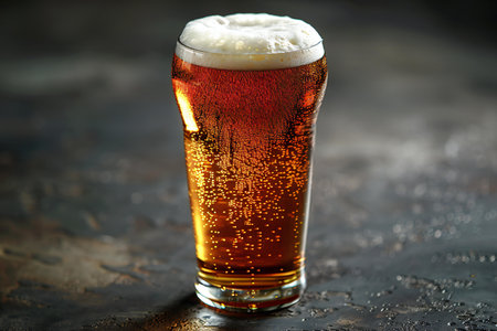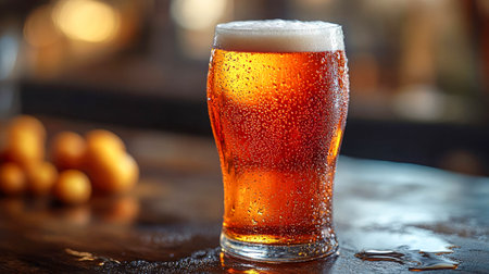 A refreshing amber beer in a glass, topped with rich foam and condensation. Perfect for gatherings, celebrations, and moments of relaxation.