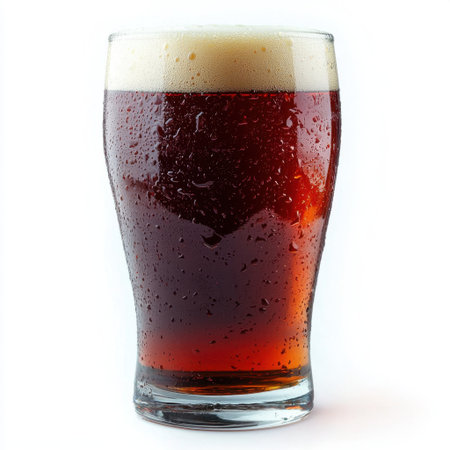 a tall glass of frothy dark bear under natural light, created with generative ai