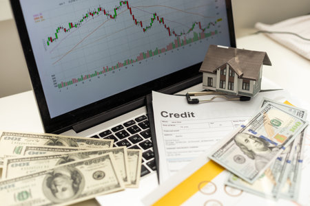 Real estate business profit and loss report business graph.Pay for home bills by credit card.