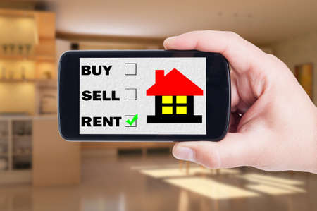 Search a house for rent concept using mobile phone, smartphone or cellphone