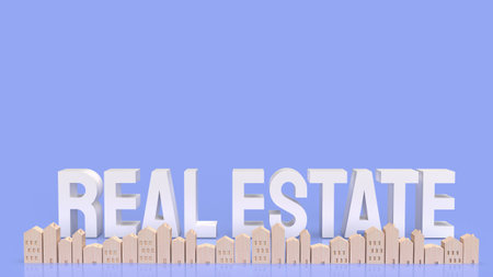 Real Estate Symbol. House miniature with the words Real Estate. Conceptual words. Real estate market. Beautiful blue background, copy space