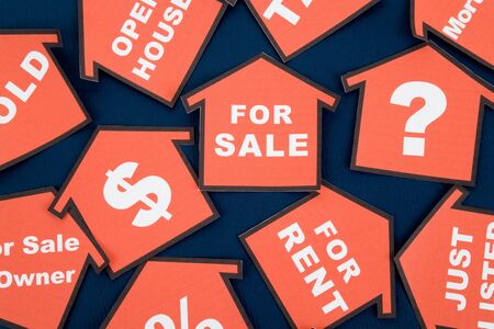 House for sale sign. Real estate housing market bubble, high and rising property price concept, unaffordable mortgage