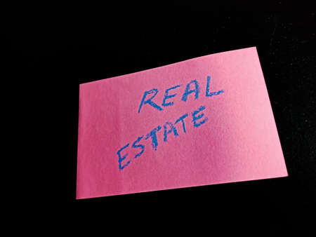 Real Estate word displayed on paper slip concept for educational informative awareness.