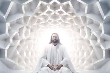 jesus sitting in the middle of an abstract tunnel