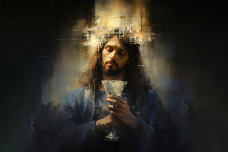 A Jesus in front of an abstract background, AI