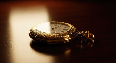 Vintage pocket watch on a wooden table. Shallow depth of field.