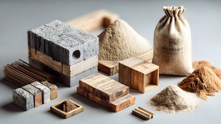 A visually striking arrangement featuring various textured blocks, stones, and natural elements, perfect for design inspiration in organic aesthetics.
