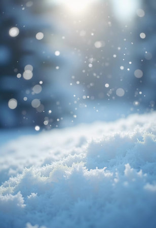 Macro texture of the snow with bokeh highlights, and a place for the inscription