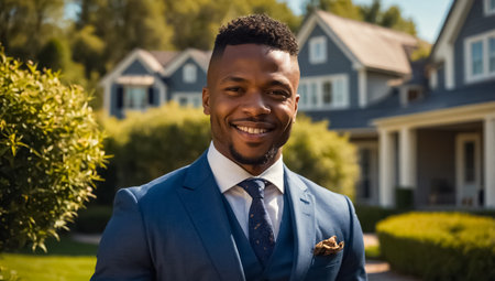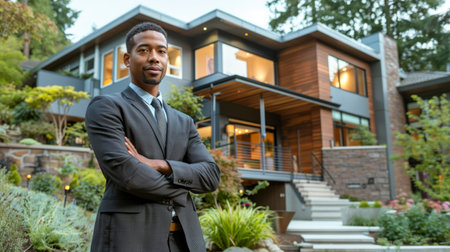African American male realtor near country house