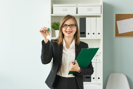 Business, realtor and real estate concept - Portrait of attractive smiling woman holding keys