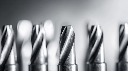 This high-quality image captures a close-up view of metallic drill bits featuring a unique spiral design. Ideal for industrial and manufacturing themes.