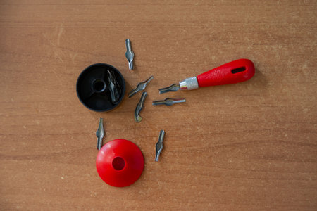 Collection of screwdriver on the desk.Color.