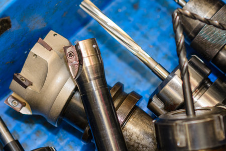 This close-up image showcases a variety of metal cutting tools designed for precision engineering in industrial environments, emphasizing craftsmanship and intricate design.